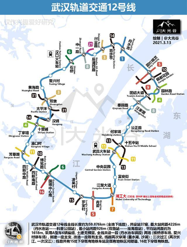 2021年8月26日,公司中標武漢市軌道交通12號線(江北段)工程第三方監測(含基坑監測)(漢口段)第三標段,本標段監測范圍包括太平洋站——中一路站。12號線是世界第二、亞洲第一長的地鐵環線,全線長度約為59.876km,共設站37座,平均站間距約為1618m;線路2次穿湖(墨水湖、沙湖),3次過江(2次長江、1次漢江);線路共有15處下穿既有地鐵車站及既有地鐵區間隧道、16處下穿既有鐵路,通車時間為2025年。地鐵監測項目一直都是公司的優勢主業,近年來,公司深度參與了武漢市地鐵線路的監測工作,不斷發揮技術服務優勢,傾力為武漢地鐵工程貢獻武勘力量。
