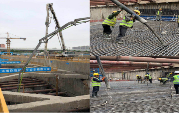 漢口濱江國際商務區地下環路首塊底板澆筑成功