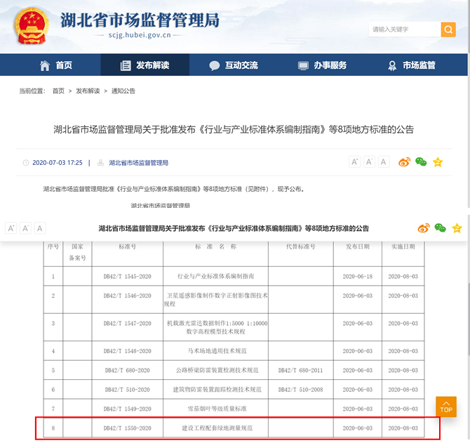 2020年7月13日,由武漢市勘察設計有限公司、武漢市測繪研究院主編,武漢市園林綠化建設管理站、武漢市園林建筑規劃設計院、宜昌市測繪大隊、襄陽市測繪研究院、潛江市勘測設計研究院等單位共同參與編制的湖北省地方標準《建設工程配套綠地測量規范》(以下簡稱《測量規范》)獲湖北省市場監督管理局批準發布,并于2020年8月3日實施。該《測量規范》是我省第一部指導地方建設工程項目配套綠地竣工面積測量的地方標準。